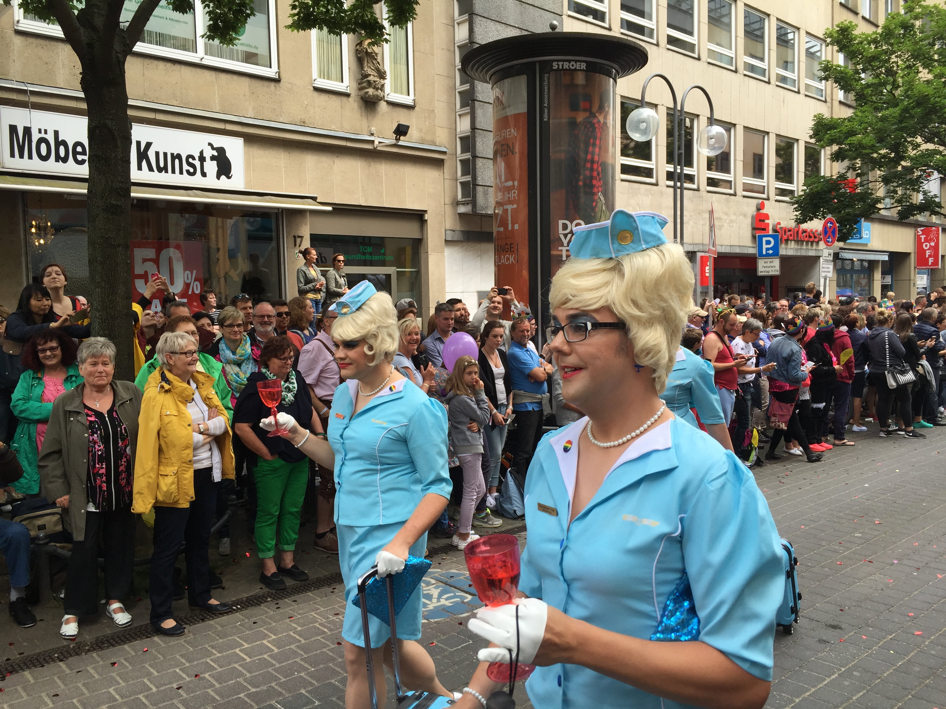 Dies ging mir durch den Kopf, als ich vor gut einer Woche am Rand des Kölner CSD-Umzugs stand und die vorüberziehenden „Homoaktivisten“ beobachtete und fotografierte. Herausgekommen ist diese Galerie von Bildern. Ich muss dazu sagen, dass ich gegenüber den Paradeteilnehmern keinerlei Aversionen empfand. Wer längere Zeit als „Berufshomo“ gearbeitet hat, kennt diese Bilder zur Genüge, sie lassen ihn emotionslos.