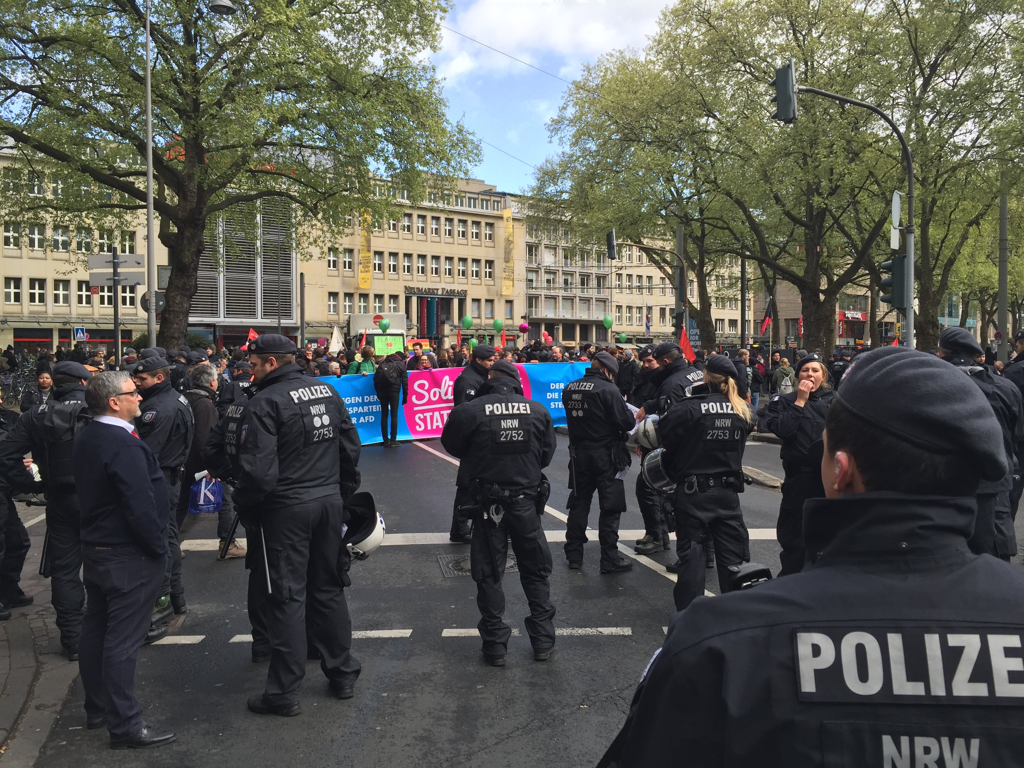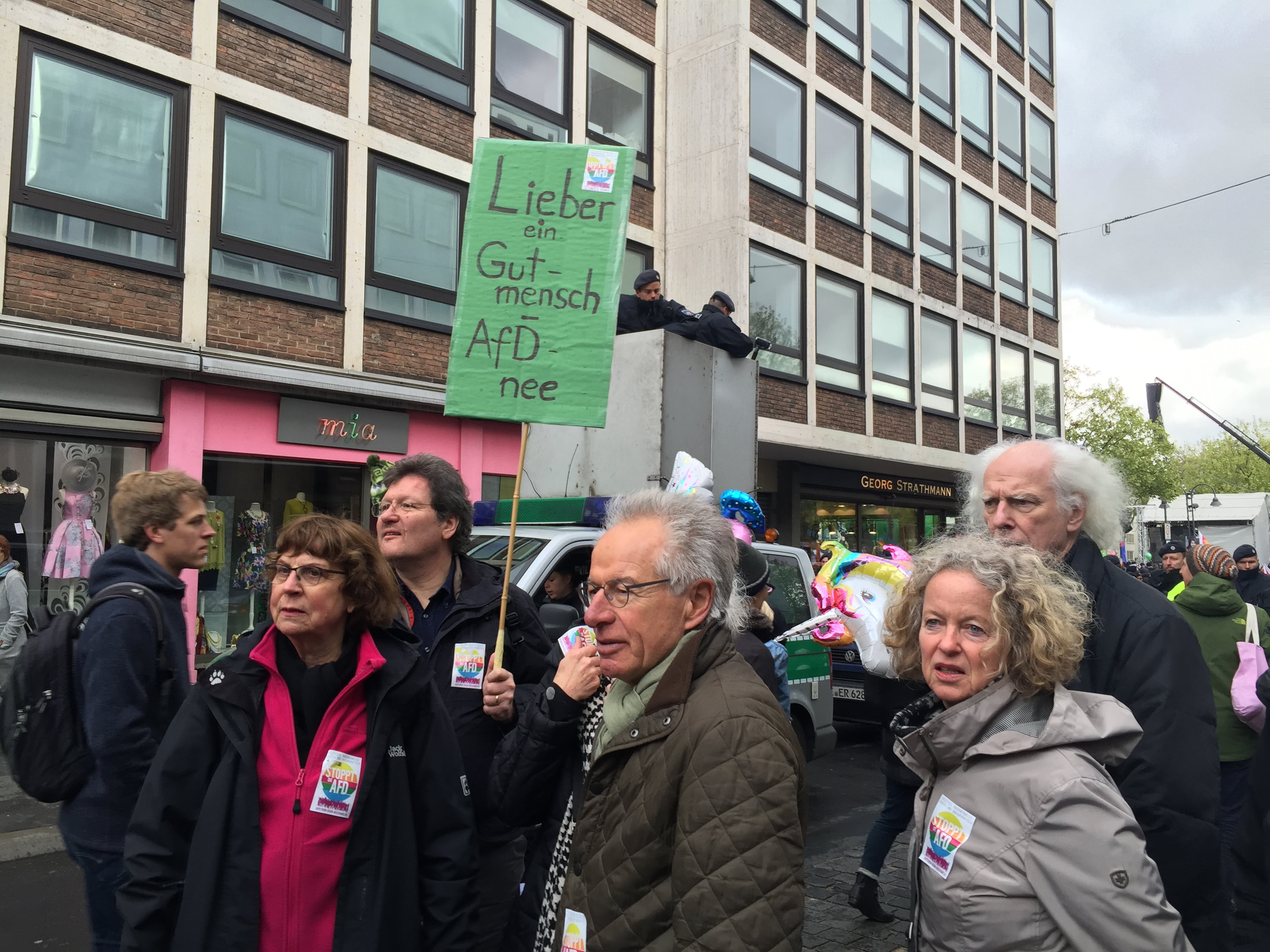 Vor allem aber natürlich gegen die AfD, die derzeit in der Domstadt ihre Bundesversammlung abhält, demonstrieren derzeit etwa 5.-8.000 Menschen (angekündigt waren ca. zehn mal mehr Demonstranten) in der Innenstadt von Köln. Die schieße nämlich auf Frauen und Kinder, die vor Krieg und Hunger flüchten