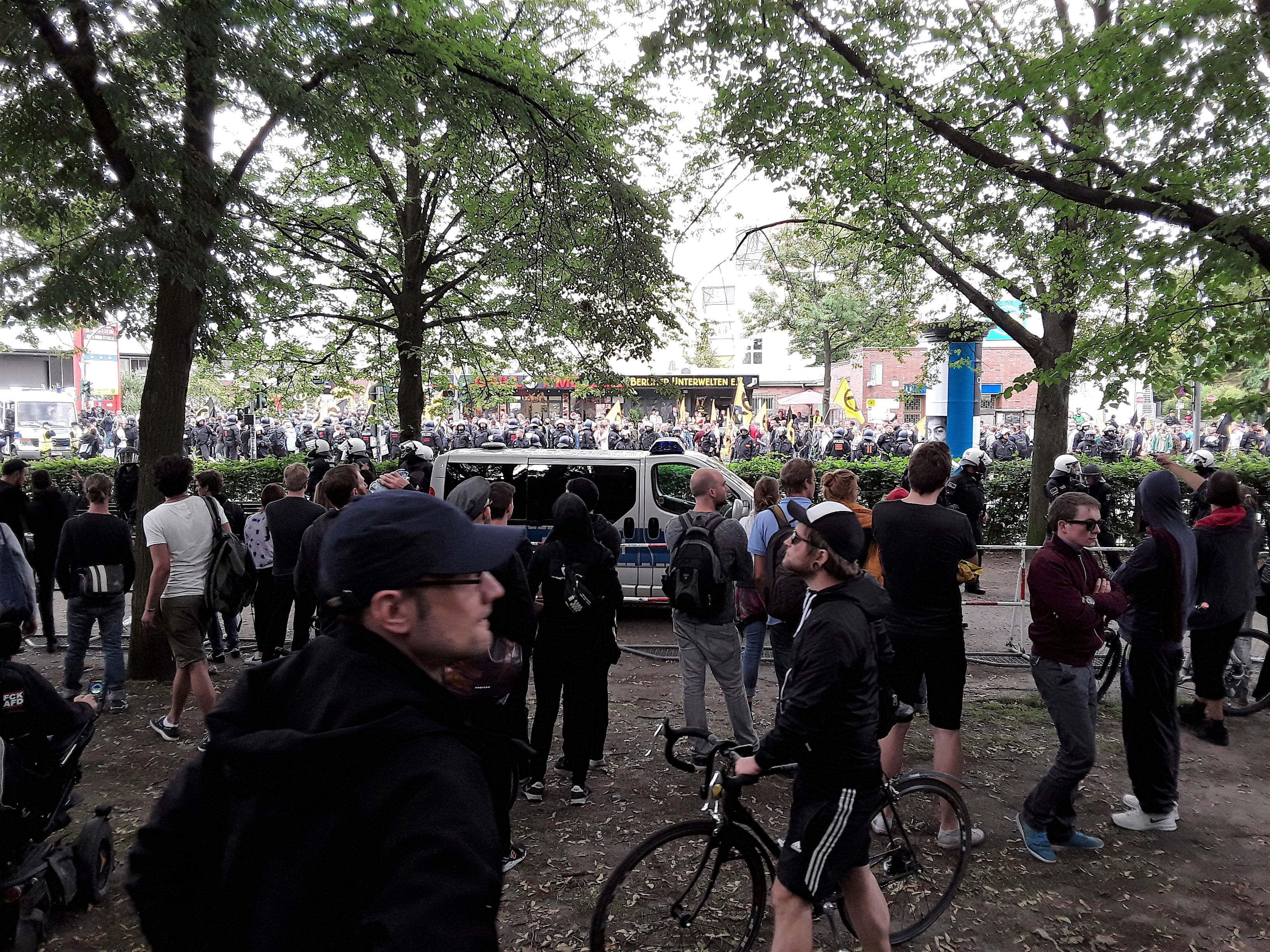 Jedes Heer wäre stolz auf diese wohlorganisierte deutsche Bürgerwehr. Selbst an Tarnung im Vorfeld war gedacht. Ankommende verwandeln sich, Kleidungsstücke aus Rucksäcken hervorziehend, unter den Augen der Polizei in kampfbereite, gut geschützte und schwer identifizierbare Mitglieder des Schwarzen Blocks.