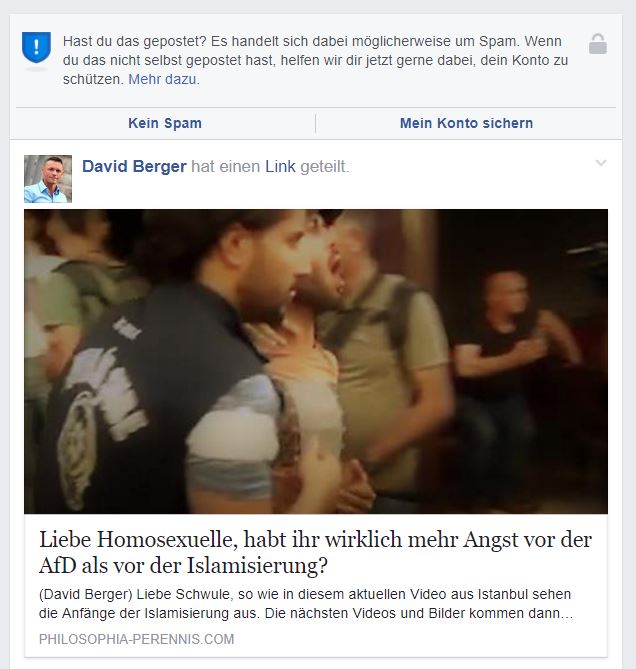 Wenn Sperrungen nach den Gemeinschaftsrichtlinien nicht funktionieren, weil der unliebsame, weil nicht linksgrüne Facebook-User selbst gar nicht schreibt, sondern einfach kommentarlos einen Link teilt, so wird dieser – manchmal innerhalb von wenigen Minuten – als „Spam“ eingestuft.