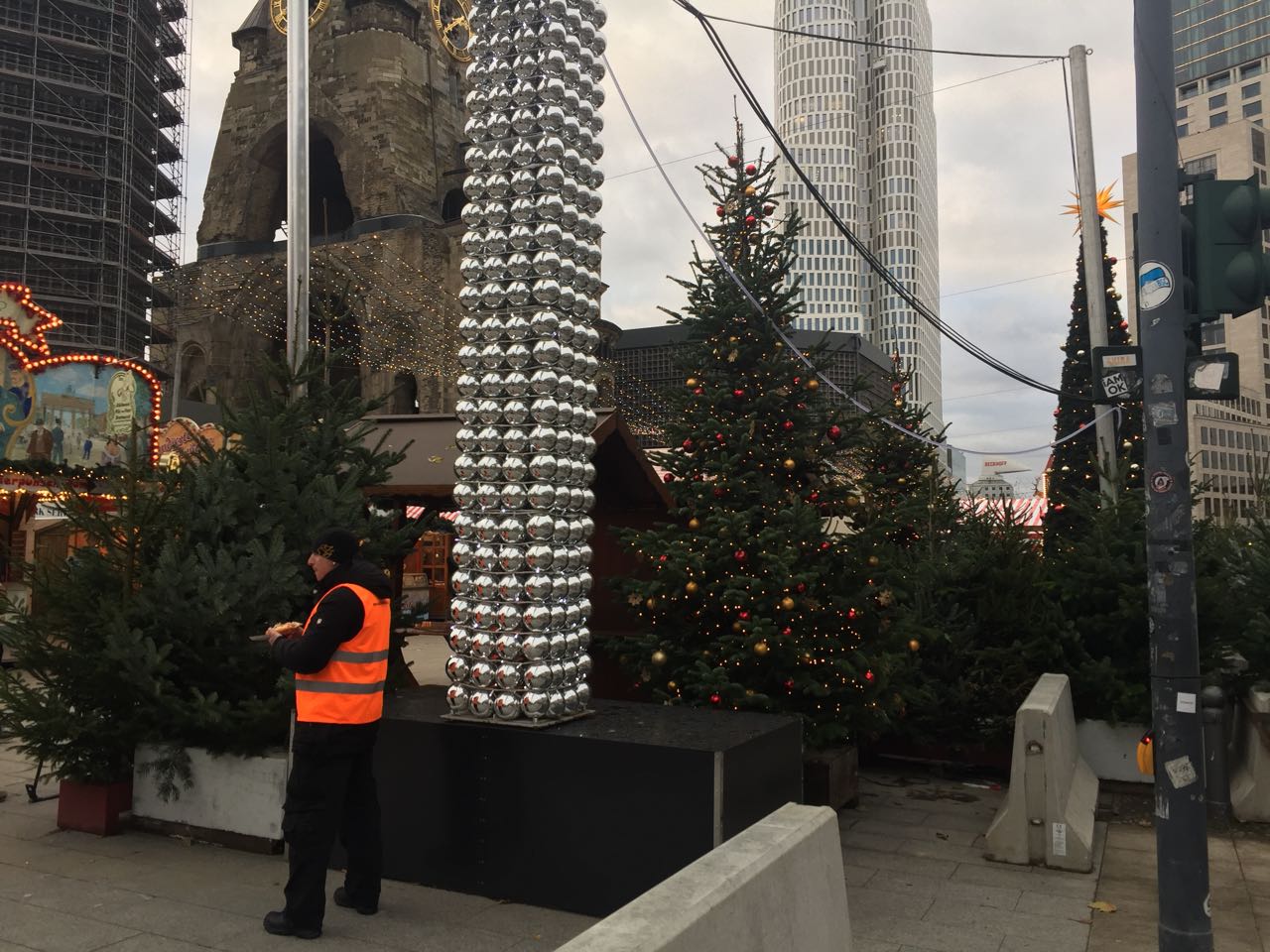 An der Stelle, an der im Dezember letzten Jahres Anis Amri mit dem LKW von der Straße aus in den Markt raste, hat man lediglich die Reihe der Merkelsperren verdoppelt.