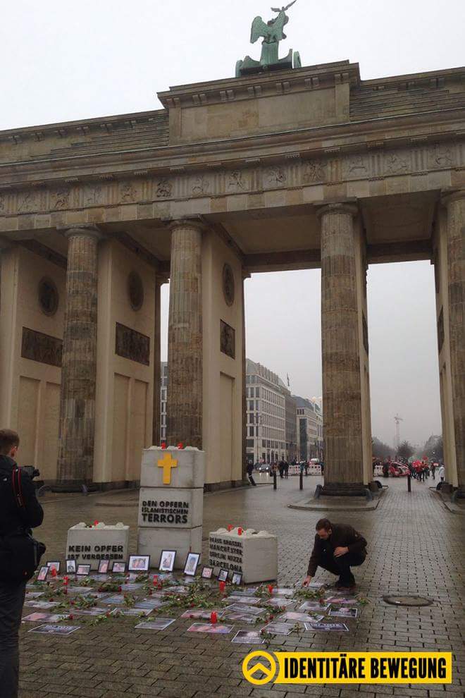 Vor nicht einmal zwei Wochen konnten arabische Gruppen gegen Juden in Deutschland hetzen und direkt am Brandenburger Tor Israel-Fahnen verbrennen. Das Brandenburger Tor war in den letzten Wochen Symbolort jener multikulturellen Ideologie, die inzwischen hunderte Opfer gefordert hat. Folgerichtig hat sich die Identitäre Bewegung dafür entschieden, genau hier ein Denkmal für die Opfer dieser Ideologie zu errichten.