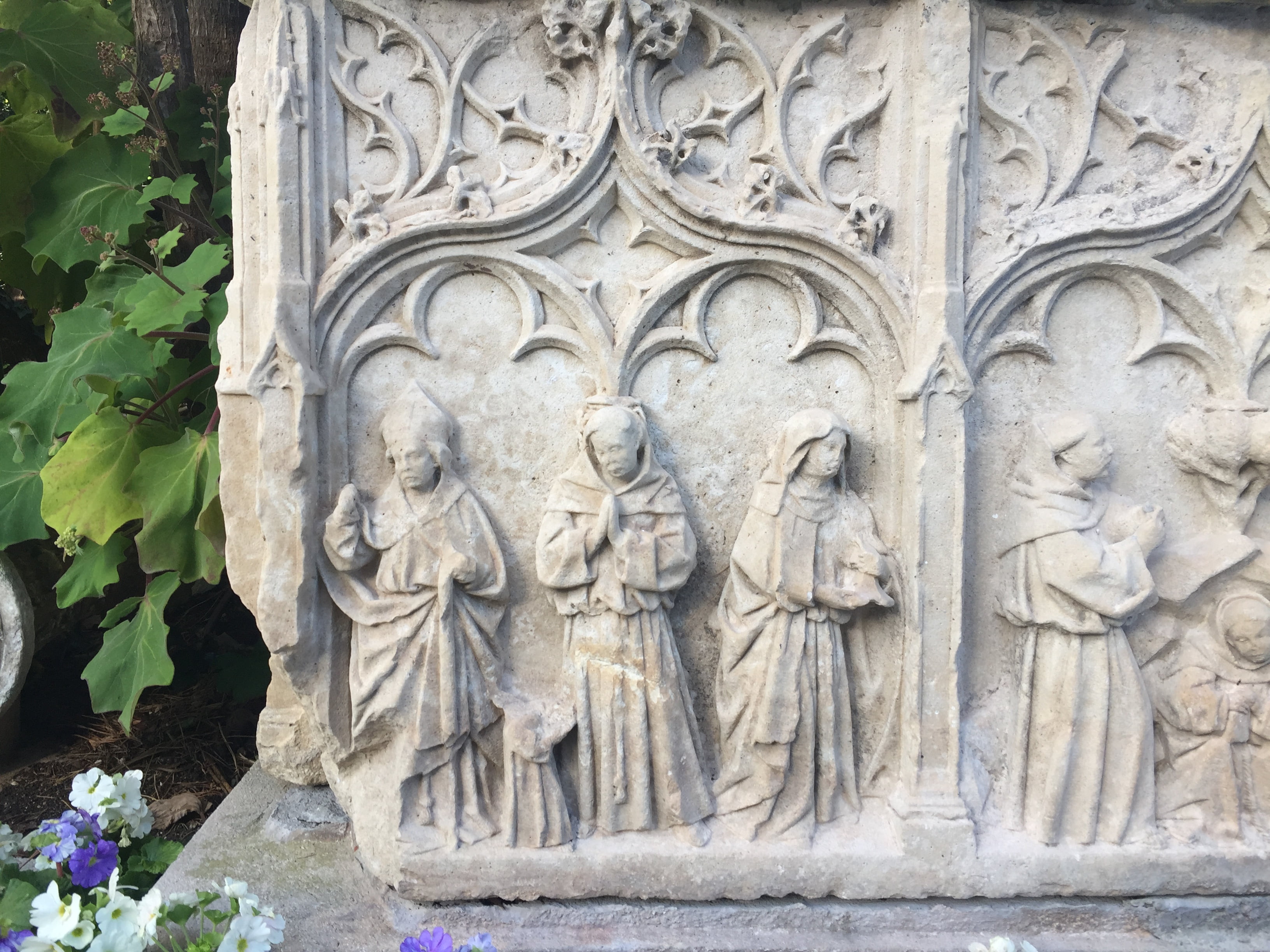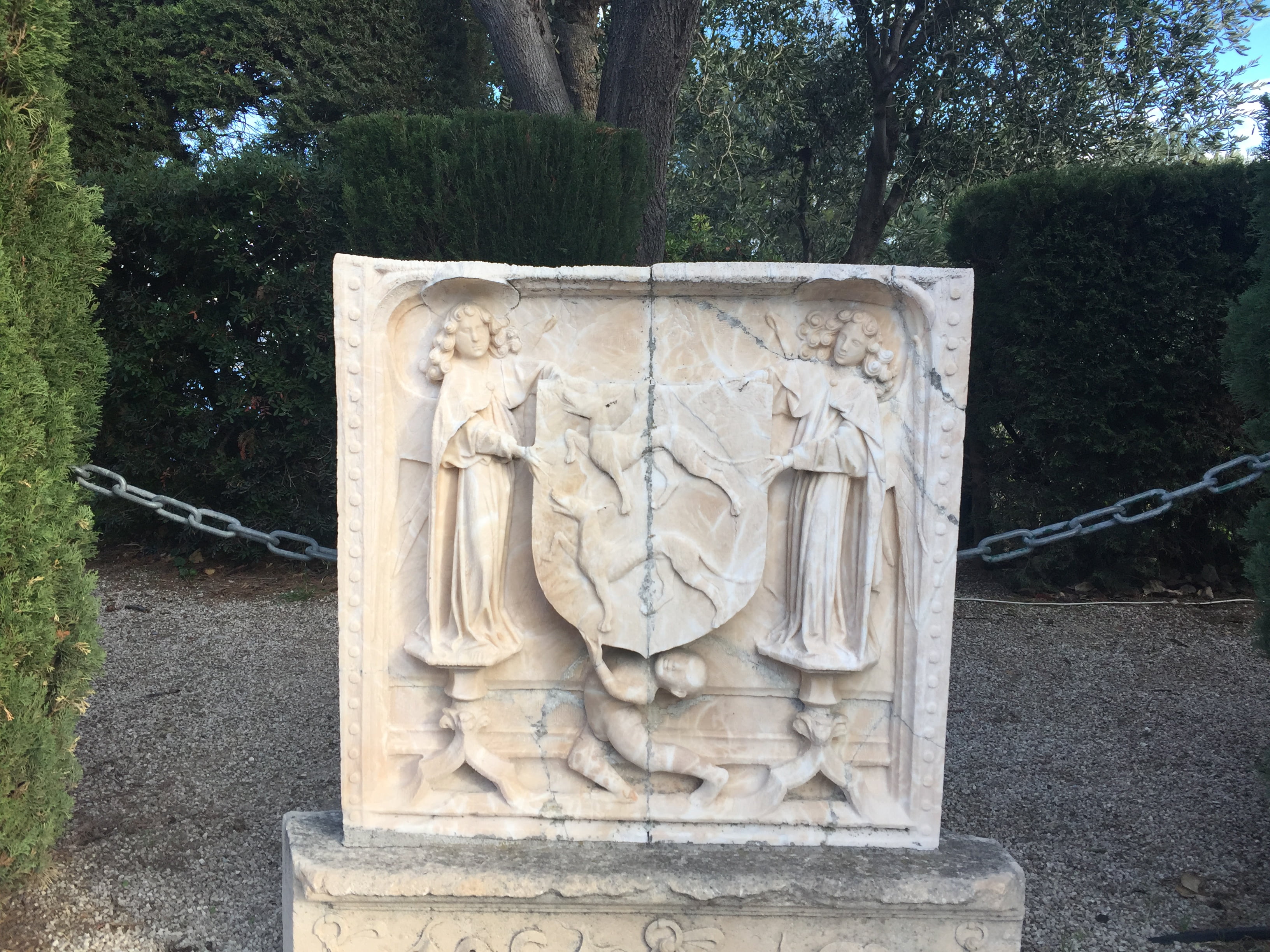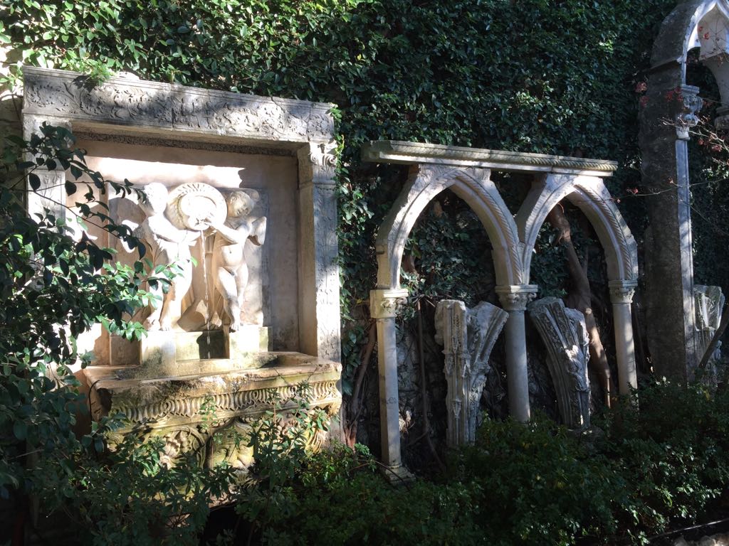 Dieses Zusammenspiel von Natur und Kultur setzt sich in der paradiesisch anmutenden Gartenanlage fort. Fast beiläufig trifft man zwischen Rosen und Buchsbaumhecken auf mittellalterliche Reliefe und antike oder antikisierende Statuen.