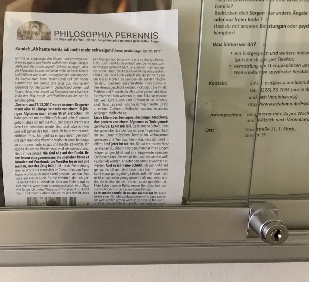 Besonders gefreut hat uns, dass die Verteilaktionen offensichtlich auch an einigen Universitäten in Deutschland stattfinden. Hier einige Fotos, die wir zugeschickt bekamen: