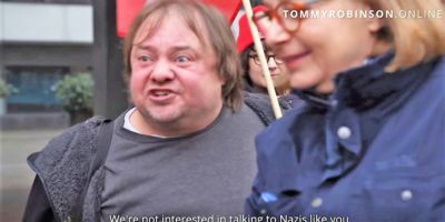 (David Berger) Tomy Robinson, der bereits in Cottbus die üblen Methoden der Mainstreammedien vorgeführt hatte, war auch beim Frauenmarsch in Berlin dabei.