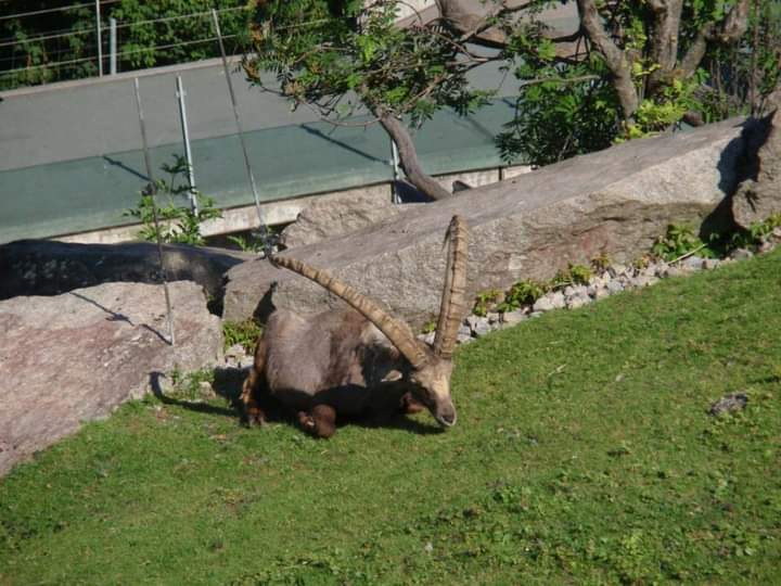 Alpensteinbock und Hirscheber in der Stuttgarter Wilhelma, männliche Tiere mit ihrem deutlich erkennbaren Sexualdimorphismus. Beide Tiernamen sind für Genderideologen zu männlich und damit diskriminierend.