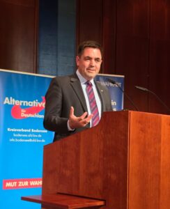 Der AfD-Bundestagsabgeordnete Malte Kaufmann (Foto l.: bei einem Vortrag der „Christen in der AfD“ am 05.11.25 in Friedrichshafen), Mitglied im Arbeitskreis für wirtschaftliche Zusammenarbeit und Entwicklung und in der Parlamentarischen Versammlung des Europarats, ergänzt dazu: