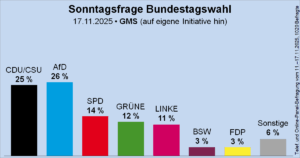 Mit der Nazi-Nummer war die AfD nicht kleinzukriegen. Jetzt liegt die Hoffnung auf Putin. Nur: Erste Umfragen zeigen, die Wähler interessiert das alles nicht. Nazi ist out und der Russland-Nummer fehlt Substanz. Die AfD bleibt stabil stärkste Partei. Die Koalition schaufelt weiter Geld der deutschen Steuerzahler in die Ukraine, wie ein Heizer Kohle in den Dampfkessel. Die Kriegsmaschine wird am Laufen gehalten. Es gibt von deutscher Seite keine Initiativen, den Konflikt einzudämmen. Die Ukraine gilt als korrupt, das lässt sich beweisen. Soldaten sterben an der Front, Kriegspolitiker werden reich – auch durch das Geld deutscher Steuerzahler. Dieser Widerspruch wird auch die kommende Debatte über den Haushalt prägen. Die Russland-Angst kann nicht die Fehler der Koalition verdecken. Auch wenn dies die Strategie der Merzregierung sein sollte. Gefährlicher als Putins imaginierte Soldaten ist der Autoritätsverlust der Koalitionäre. Es sind nicht Putins Soldaten, die die Türen des Reichstages eintreten, sondern all die innenpolitischen Fehlentscheidungen der Regierung. In der Tat, ein turbulenter Winter steht an.