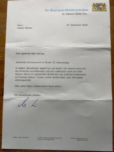 Der standardisierte Gruß aus der Staatskanzlei ist für viele ein netter Brauch. Für Söllner aber ist er das Gegenteil: ein Symbol für die „arrogante Selbstbeweihräucherung“, die er seit Jahrzehnten kritisch sieht. Am Montag postete er das Schreiben auf Facebook – und reagierte so, wie seine Fans es kennen: spöttisch, scharf und ohne Dankesworte. „Das hättest du dir sparen können“, schrieb er direkt an Söder.