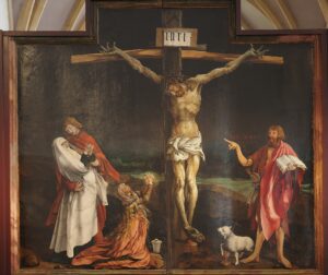 Während der erste Teil des Interviews dem literarischen Schaffen Buluczs und dessen biographischen Hintergründen sowie dem Katharsis-Moment des Schreibens gewidmet ist und Bulucz mit einer großen Offenheit, aber aber auch anscheinend sehr gelassen über seine teilweise tragischen Kindheitserlebnisse berichtet, ändert sich die Stimmung – so meinte ich das zu erkennen – deutlich, als Meetschen auf den Isenheimer Altar (Foto l.) zu sprechen kommt.